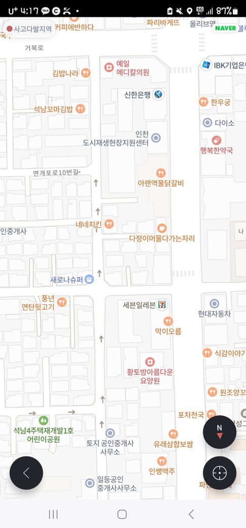 저는 지도에 일방통행 방향으로 정상 주행하던 2륜차 이고 상대 차량은 세븐일레븐 쪽에서 진입한 승합차 입니다.