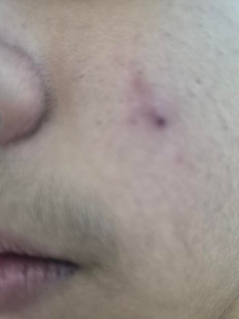 사진상 병변은 깊은 흉터라기보다는 “염증 후 색소침착 또는 혈관성 자국(PIH/PIE)”에 가까워 보입니다. 중심에 어둡게 보이는 부분은 남아 있는 염증이나 작은 혈종일 가능성도 있습니다. 이 단계에서는 구조적으로 파인 흉터가 아니라서 충분히 호전 가능한 범주입니다.