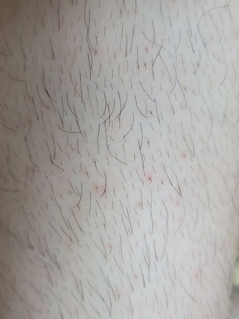 털이 자라는 부분에서 피부가 빨갛게 돼있는걸 봤습니다