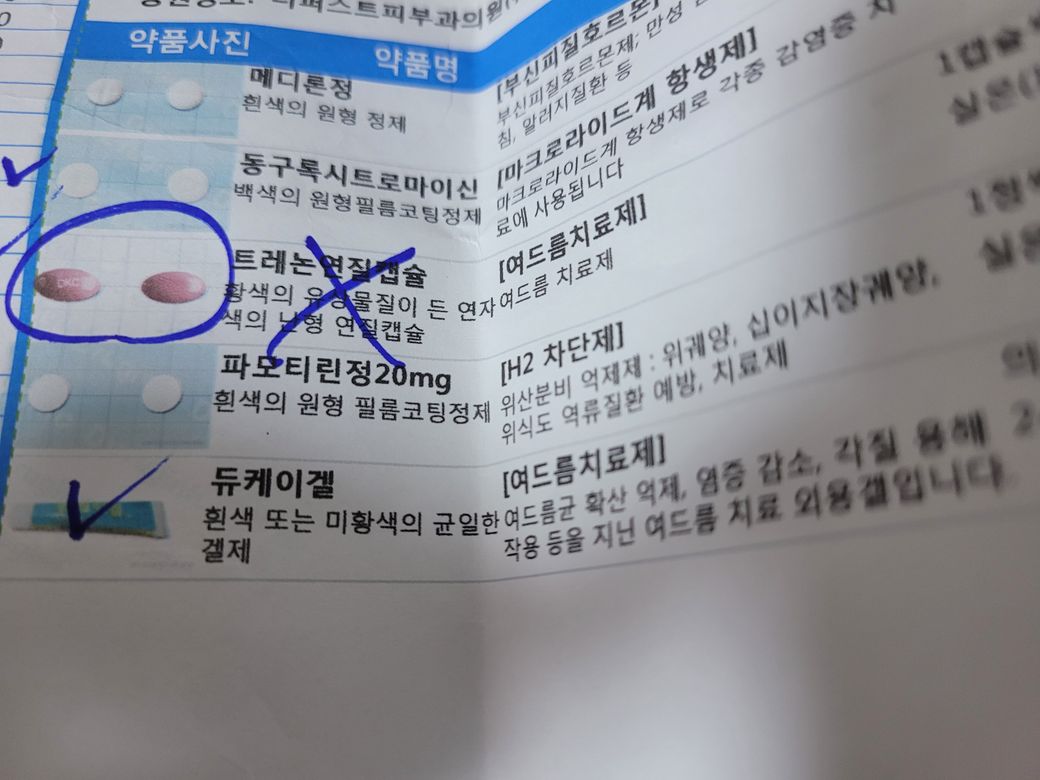 다른 피부과를 갔을때 의사선생님이 저렇게 트레논연질캡슐을 먹지 말라고 하시면서 저렇게 엑스자표시를 하셨어요. 어느분 말이 맞는 건가요?