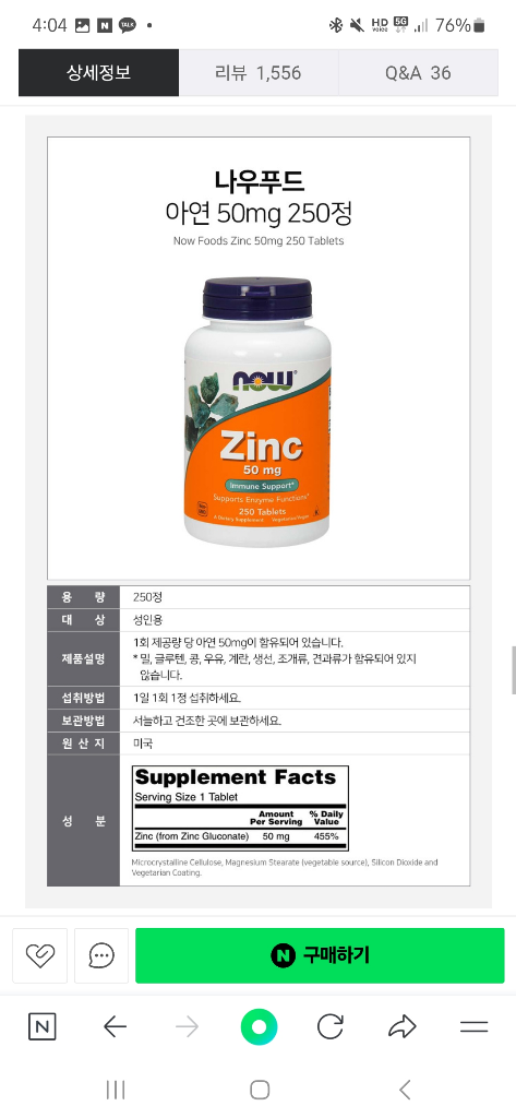 다만 아연 제품의 함량이 1정당 50mg으로 상당히 용량이 높은 편입니다
