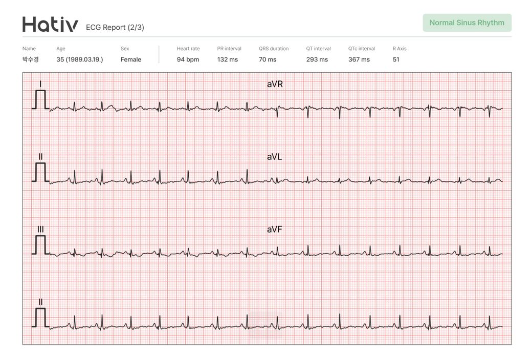 3가지 자료 전부 1시 방향에 초록색 글씨고 normal sinus rhythm이라고 나와있는데요