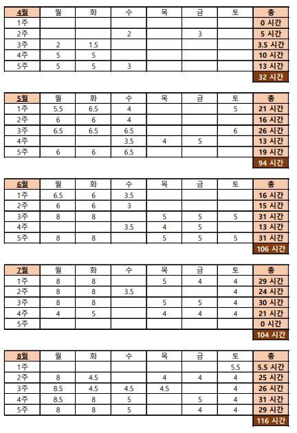 변동이 큰 이유는 원래 하던 알바생이 빠져서 제가 몇 주 봐준 것도 있고, 학교가 방학을 하니 사장님이 주 4-5일 해 달라고 해서 더 근무한 것도 있고, 방학이 끝나고 시간표가 바뀌어서 날짜를 바꾸게 된 것도 있습니다. 시간이 바뀔 때마다 사장과 합의했습니다.