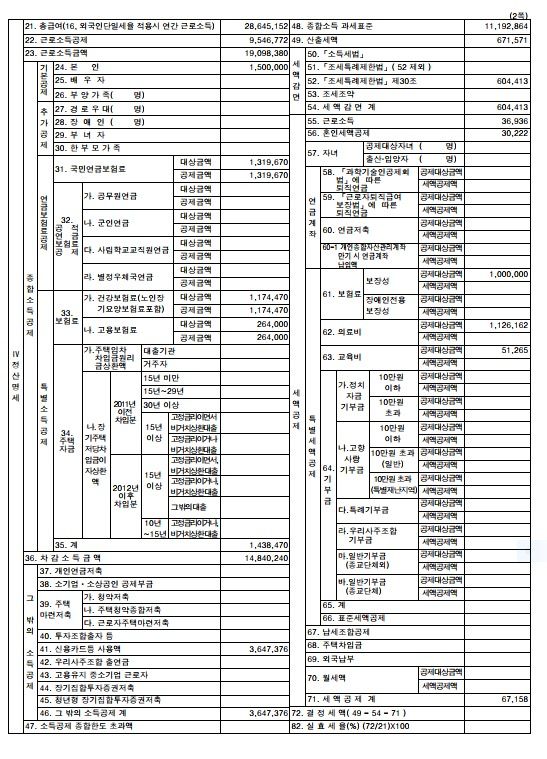 즉, 첫번째 사진에서 49번 산출세액이 671,571원입니다. 아무런 공제가 없다면 이 세금이 질문자님이 납부해야 할 금액으로서 386,420원과 671,571원의 차이를 추가로 납부해야 하는 세금입니다.