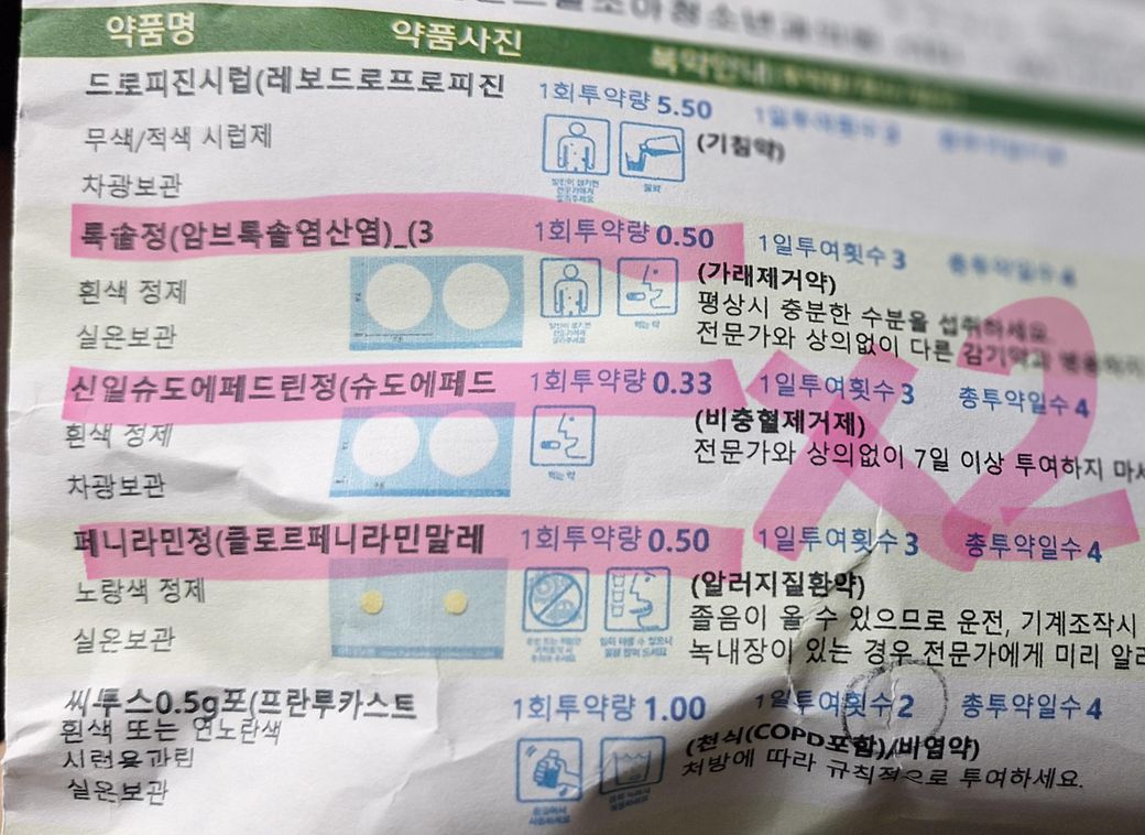=> pm 8:10에 비염으로 오늘 병원에서 처방받은 드로피진.씨투스 는 정해진 양을 먹였는데.