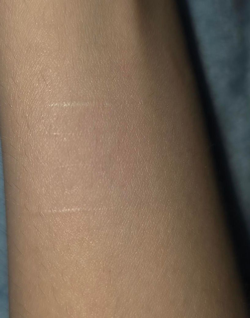 사진상으로 잘 안보이긴한데, 위아래로 튀어나와있는 하얀흉터 두개가 있고, 그 사이로 그어진거같은 자잘한 흉터들이 있습니다. 자잘한 흉터들은 자세히 보아야 보일정도인데, 위아래로 나있는 큰 흉터는 튀어나와있어 눈에 띕니다.
