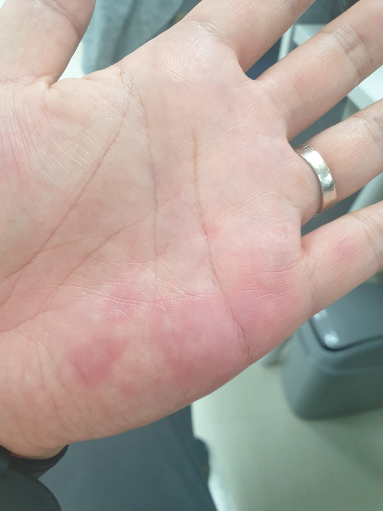 1. 급성: 선홍색의 붉은 반점이 생깁니다.