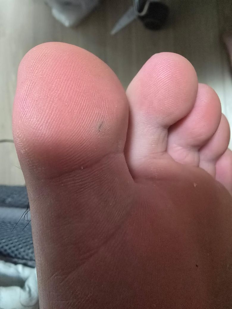 흑색종이 아니라 무언가 날카로운 것은 밟아, 발가락 부근에 상처가 난 것으로 보입니다.