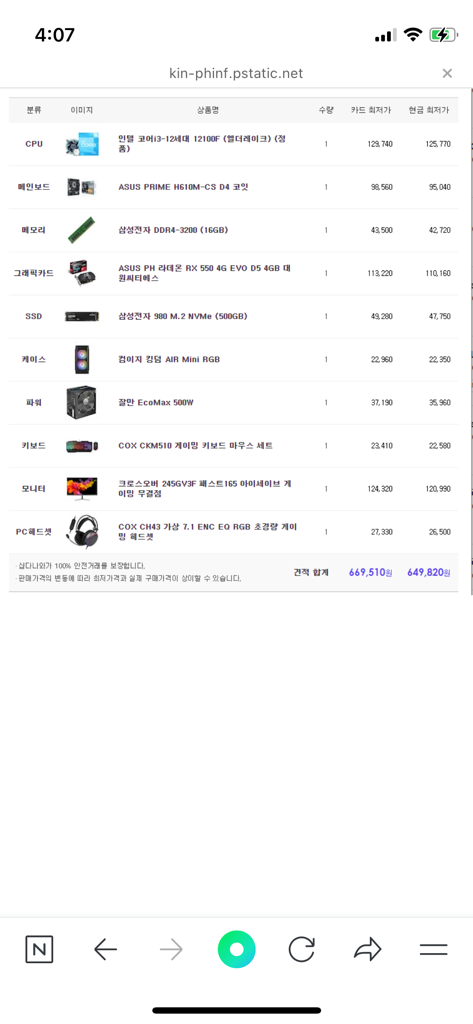 컴퓨터 견적 2개를 받아봣는데요, 어떤게 괜찮나요?