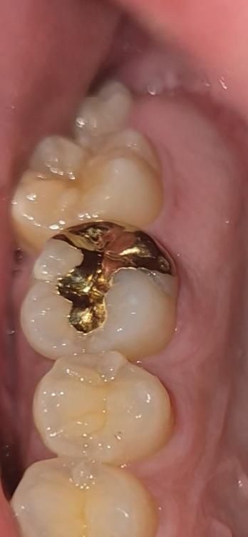 - 몇 년 전에 금인레이를 한 것인데 이게 크랙인지 아닌지 궁금합니다. 통증은 없습니다. 혹시 크랙이면 치료해야 하나요? 아니면 그냥 잘못 본 건 가요?