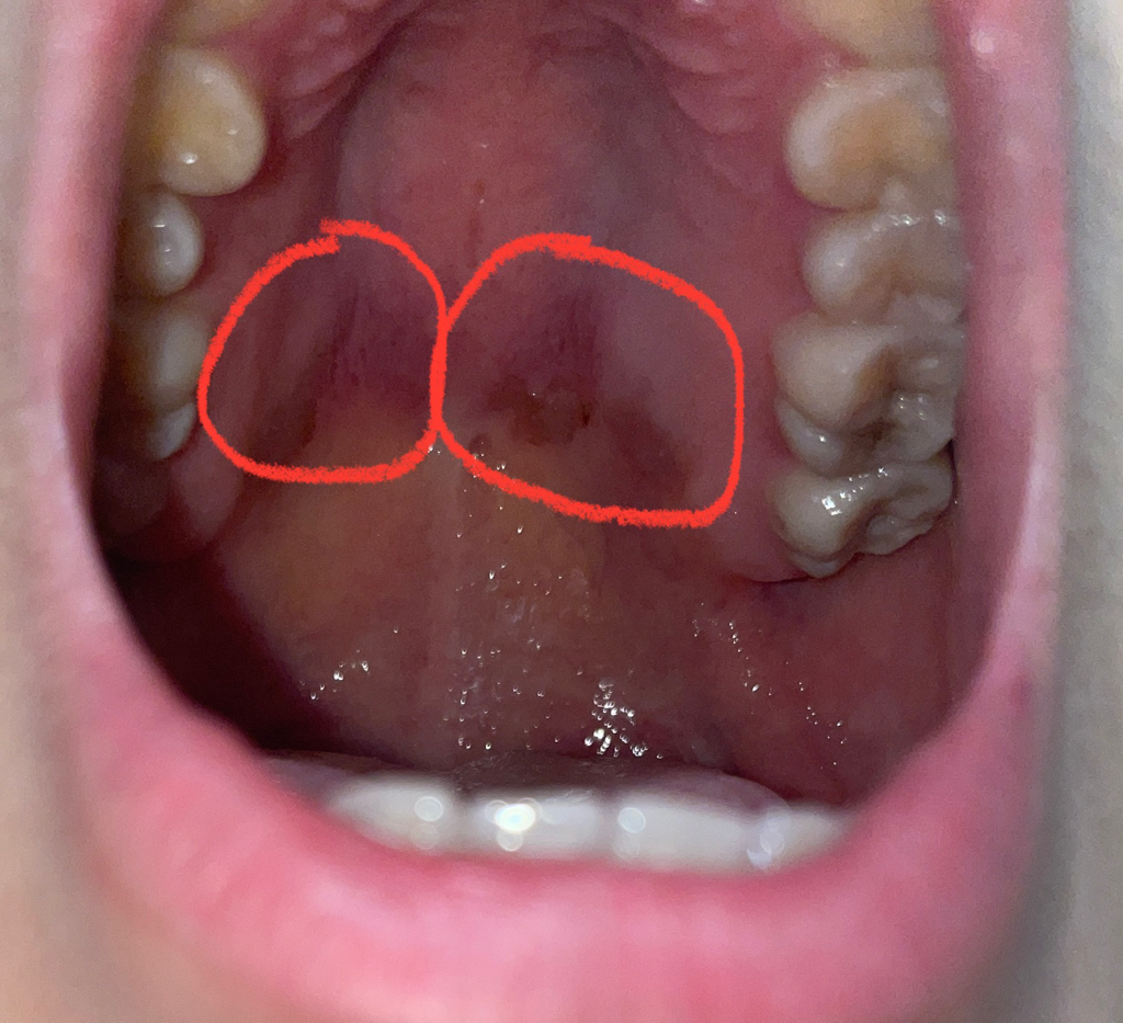 안녕하세요. 이욱현 의사입니다. 구강암이 의심되면 의뢰서를 써드리고 상급병원 진료를 안내 했을 것으로 보입니다. 연구개(palate)에 염증이 생긴 것으로 보이며 입안에 침이 부족한 것이 가장 흔한 원인입니다. 수분을 충분히 섭취하고 카페인은 가급적 줄이는 것이 좋습니다.