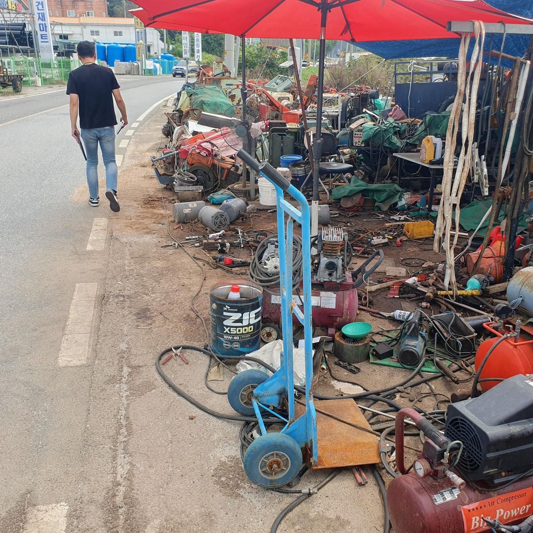 25년 9월 27일 오전 중 자동차로 사진 내에 있는 업체의 적치물 옆을 주행 중 이물질을 밟고 타이어가 터졌습니다.