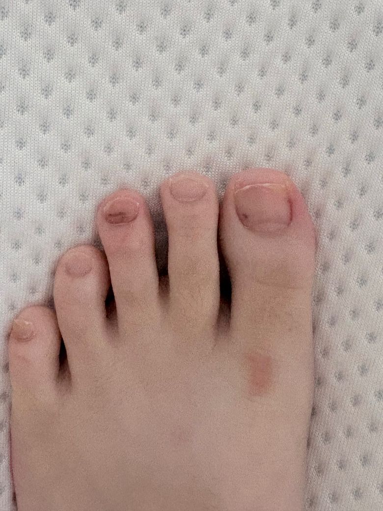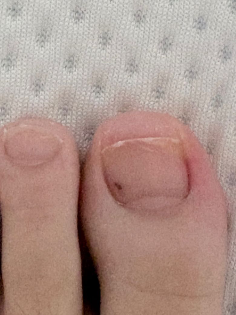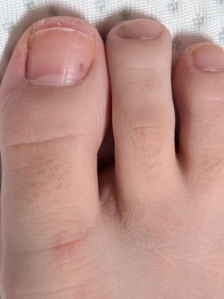 양쪽 엄지 발가락에 점이 보이고 한발톱은 크게 보입니다. 엄지 마디 밑은 간지러워서 긁으니 피부도 변했습니다. 통증은 느껴지지않고 두달 전에 꽉끼는 신발을 신은 기억은 있는데 멍일까요 무좀 또는 흑색종일까요?