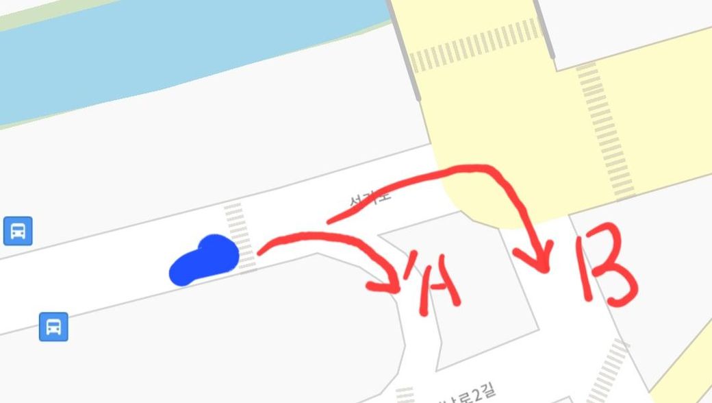아래 약도의 위치에서 A와 B 방향으로 (아니면 A방향으로만)