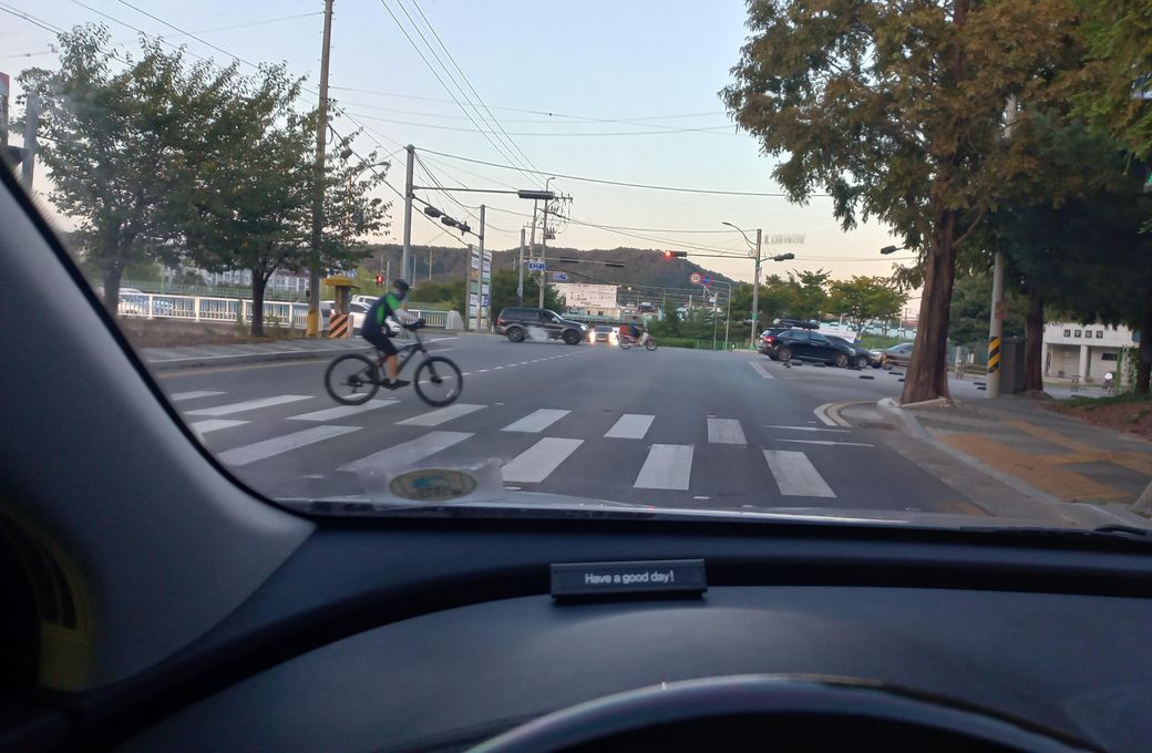 다른 사진은 차 안에서 바라본 정면 사진이고 오른쪽 까만 차 있는곳이 B방향 진입로입니다.