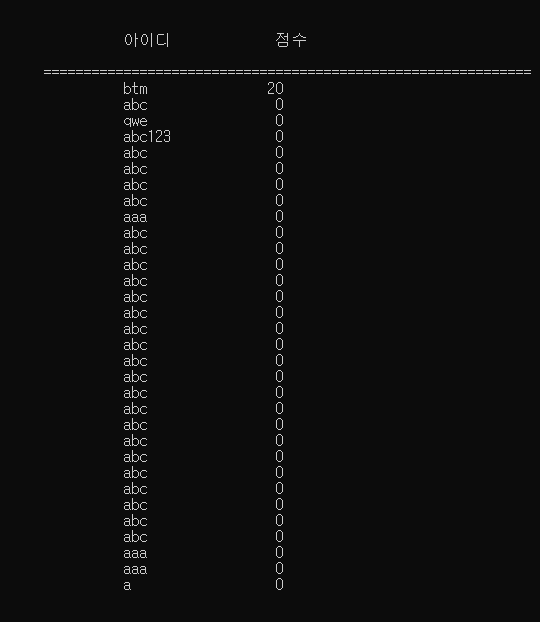 gotoxy(x, y); printf("\t\t아이디\t\t 점수");