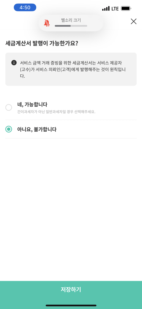질문하신 내용에 대하여 아래와 같이 답변 드립니다.사업자등록을 안했다면 불가로 선택하시면 됩니다. 불가로 선택할 경우, 숨고 측에서 질문자님께 소득을 지급할 때 3.3% 사업소득세를 원천징수하고 수수료를 지급합니다. 본래 별도의 직원과 사업장 없이 본인의 인적용역을 제공하고 얻는 소득은 부가가치세 면제가 되는 사업소득에 해당합니다. 일명 프리랜서 소득이라고 합니다.