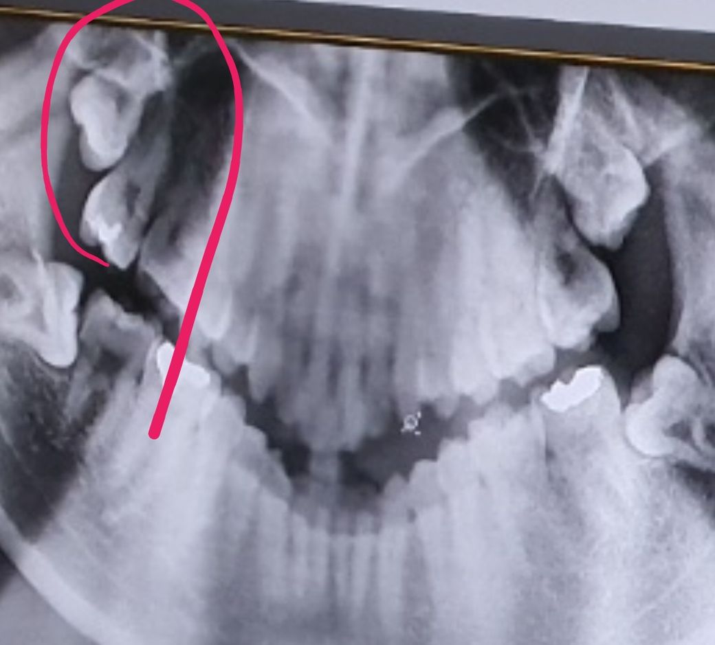 4년전 찍은 엑스레이이인데요 저기 윗쪽 이빨이 조금씩 자라나고 있는데 이 경우 옆 치아 안건드리면 발치 안해도 되지않나요? 궁금합니다. ㅠ