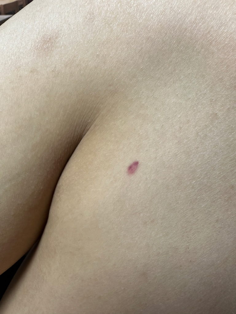 자반증은 purpura로 점같은 출혈 양상보다는 서로 융합되는 양상의 멍과 비슷한 양상으로 나타납니다. 오히려 점상출혈과 감별이 필요해 보이나 사진상으로는 발진의 양상이 출혈보다는 피부 발진에 가까워 보입니다. 발진은 최근 바이러스 감염이나 다른 감염성 질환으로 인해 발생할 수도 있어 피부과에 내원하시어 진료를 받아보시는 것이 좋겠습니다.