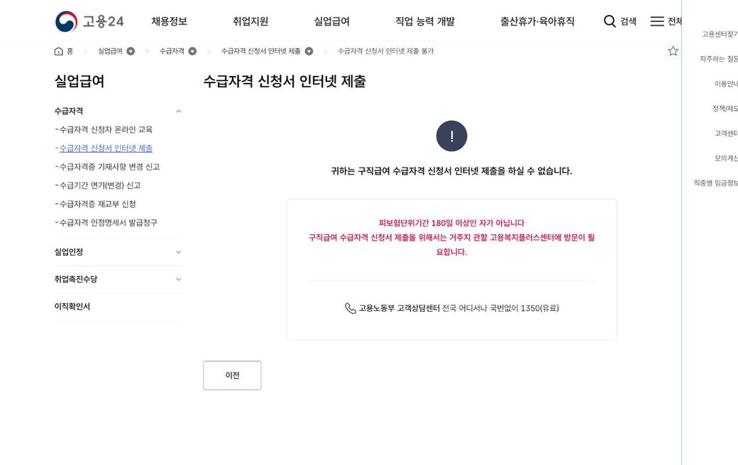실업급여 온라인 신청이 안되는 경우가 있나요?