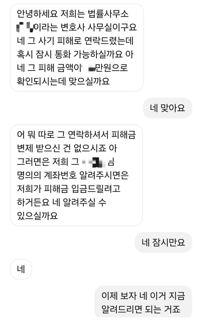 사기 피의자 변호사와 변제 관련 통화를 했습니다