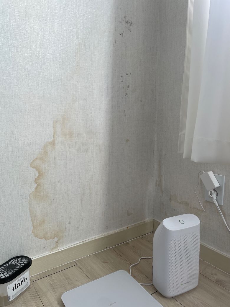 제습기를 같이 사용했는데도 불구하고 벽 결로 현상 때문에 이렇게 오염이 졌는데 이것도 퇴거할때 세입자가 벽지 비용을 배상해야 하는 건가요?