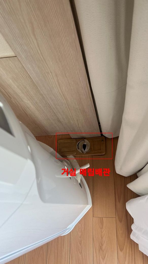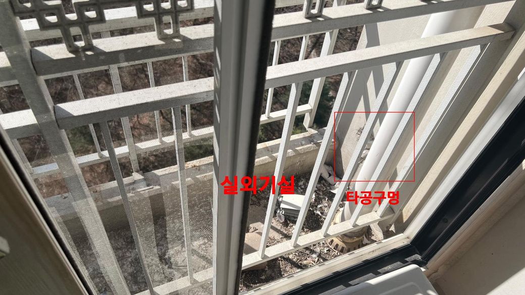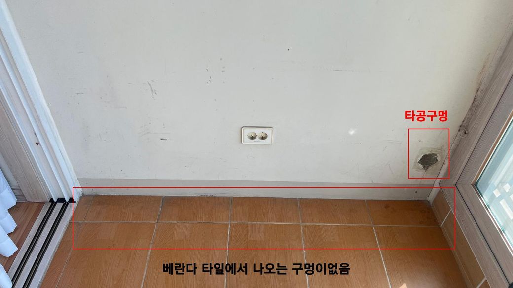 거실에서는 매립으로 나가는 구멍이 있는데 베란다에서는 나오는 구멍이 없습니다.