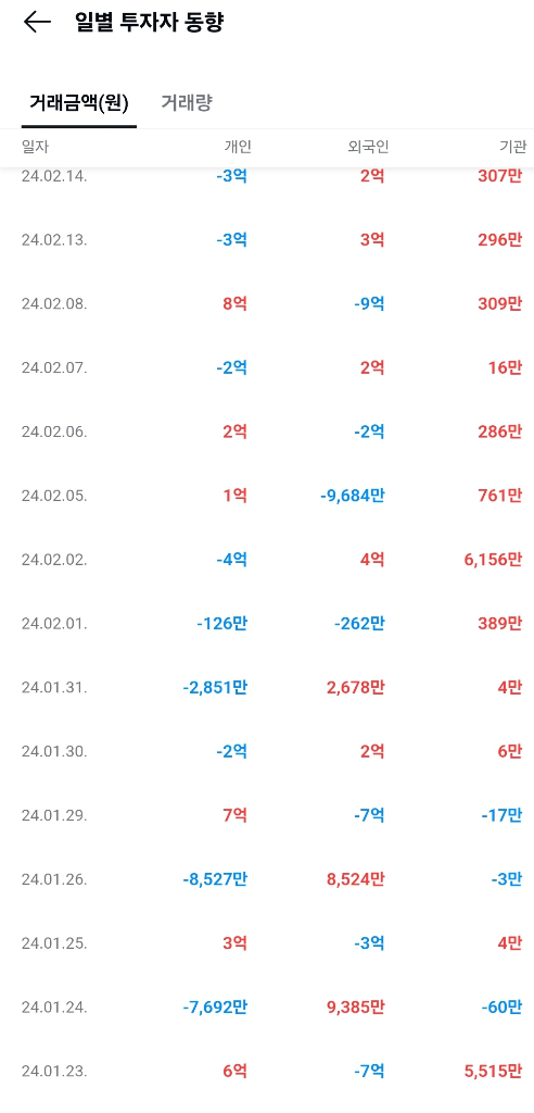 기관투자자의 2월 1일 기준으로 389만이라는 것은, 3백 8십 9만원이라는 것입니다.