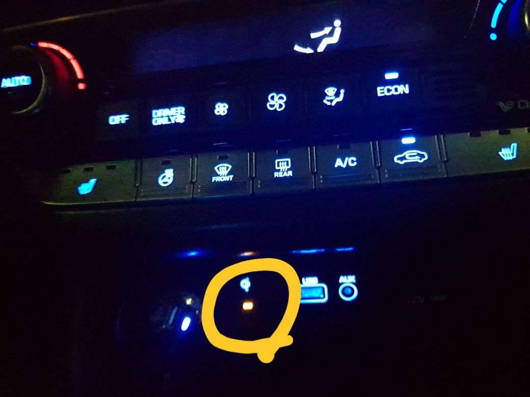 자동차 내부의 다음과 같이 USB 꽂는 부분 왼쪽 버튼에 불이 들어와 있는데 어떤 기능을 하는 버튼인지 궁금합니다.