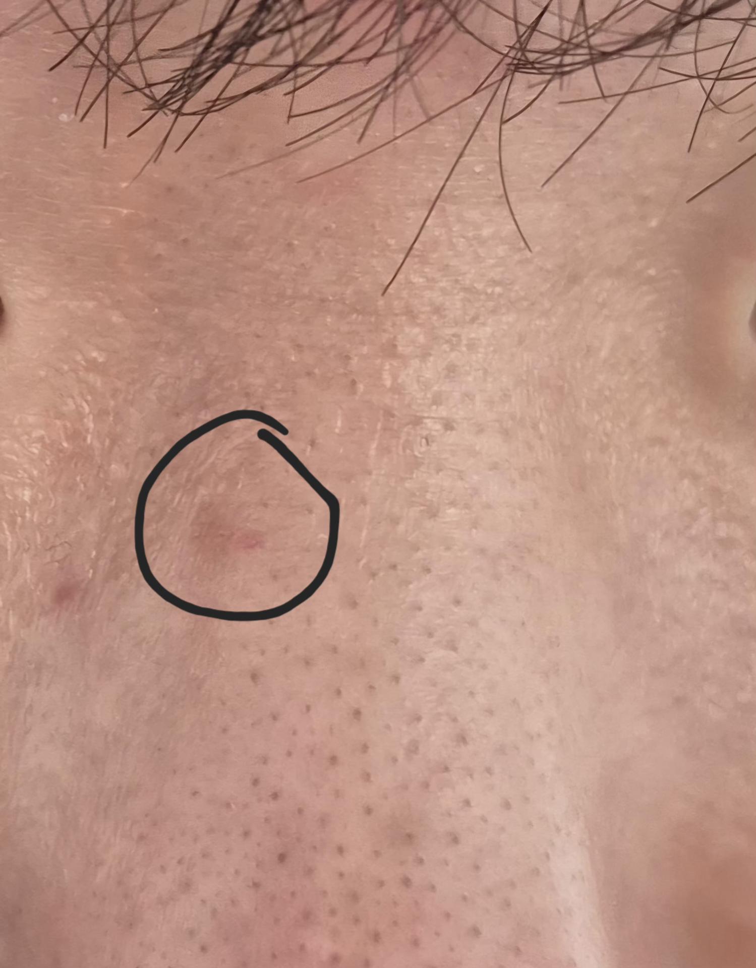 색소침착이라면 보통 갈색 또는 회갈색으로 보이고, 자외선 노출에 따라 점차 옅어지는 경향이 있습니다. 반면 사진처럼 옅은 붉은색을 띠고 수년간 거의 변화가 없다면, 여드름을 짠 뒤 생긴 혈관 확장 자국(여드름 후 홍반)이나 아주 얕은 함몰성 흉터일 가능성이 큽니다. 특히 콧등 피부는 피지선과 혈관이 풍부해 이런 자국이 오래 남는 경우가 흔합니다.