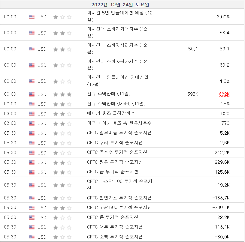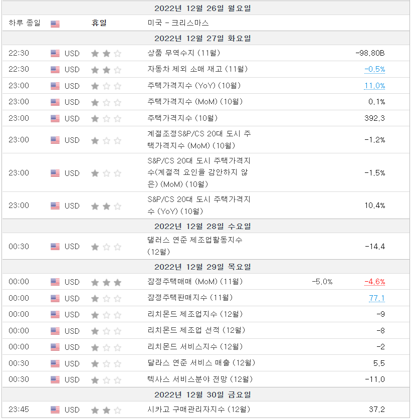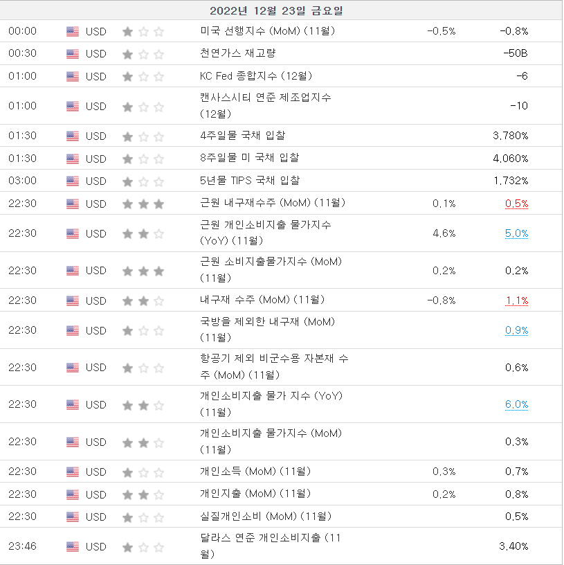 23일 근원소비지출물가지수, 24일 신규주택판매(11월) 등의 일정이 남아있습니다.