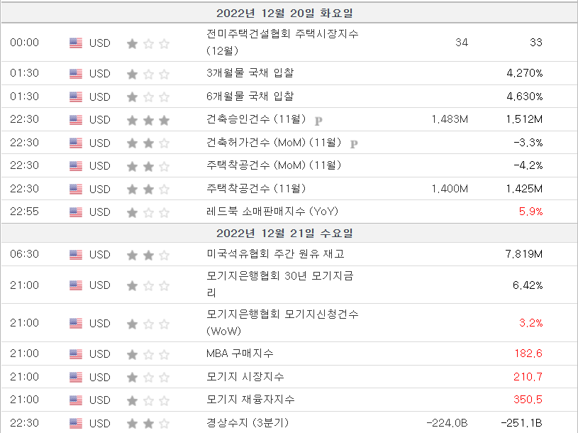 20일 건축승인건수(11월), 22일 기존주택판매(11월), GDP 3분기, 신규실업수당청구건수