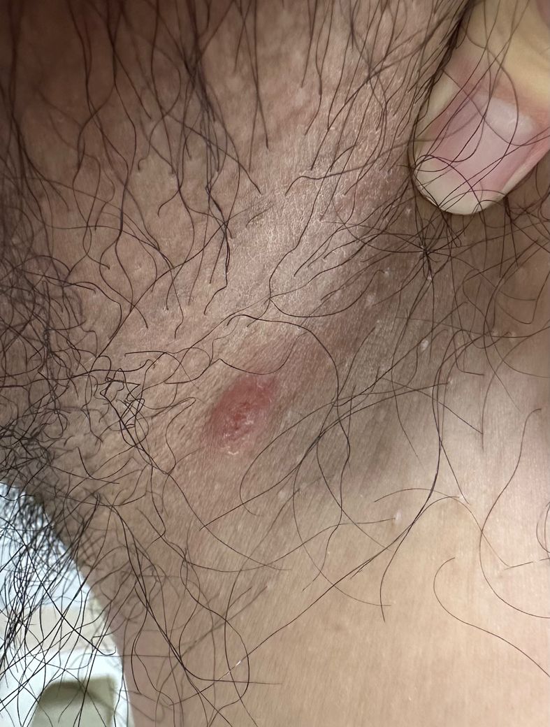 5일전쯤엔 작은 여드름같은 느낌이었는데 자다가 긁었더니 그런지 이틀전쯤 보니 사진만큼 커졌어요. 그 이후 3일 동안은 커지지않고 같은 크기인듯 해요. 옆으로 번지진 않고 하나만 나있네요. 부위가 가랑이라 시달키면 더 안나을까봐 이지덤(여드름패치) 같은걸 붙여놨어요. 통풍 잘되게 신경쓰고 있는데 어떤 증상일까요?
