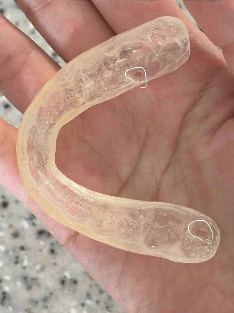 스플린트 계속 조정받다보니 스플린트가 얇아져서 구멍이 좀 크게 두개 생겼는데 계속 껴도 괜찮을까요?