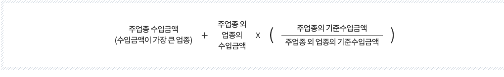 업종이 둘 이상일 경우, 아래 방식으로 계산된 수입을 기준으로 기준경비율/단순경비율을 판단합니다.