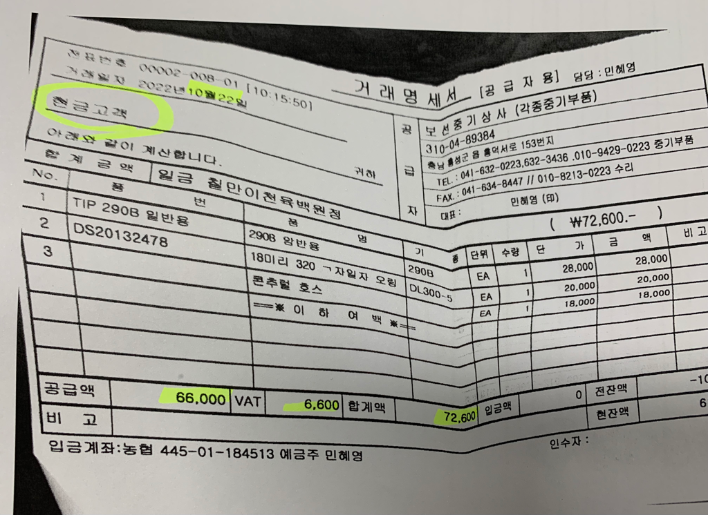 3. 아래 사진처럼 거래명세서를 받고 현금결제하고 현금영수증은 안받았는데 이걸로도 매입 공제 받을수 있나요?
