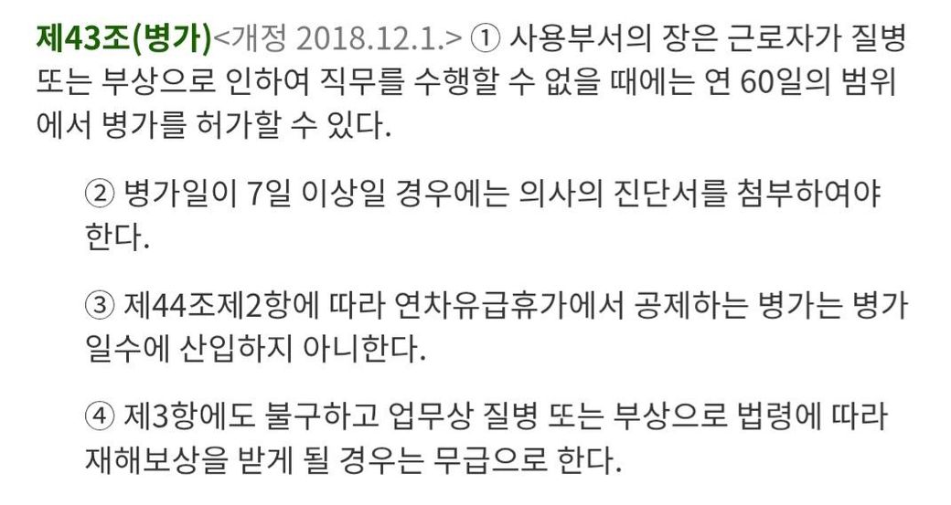 공무원 규정을 따르는 회사 병가 질문 무급?