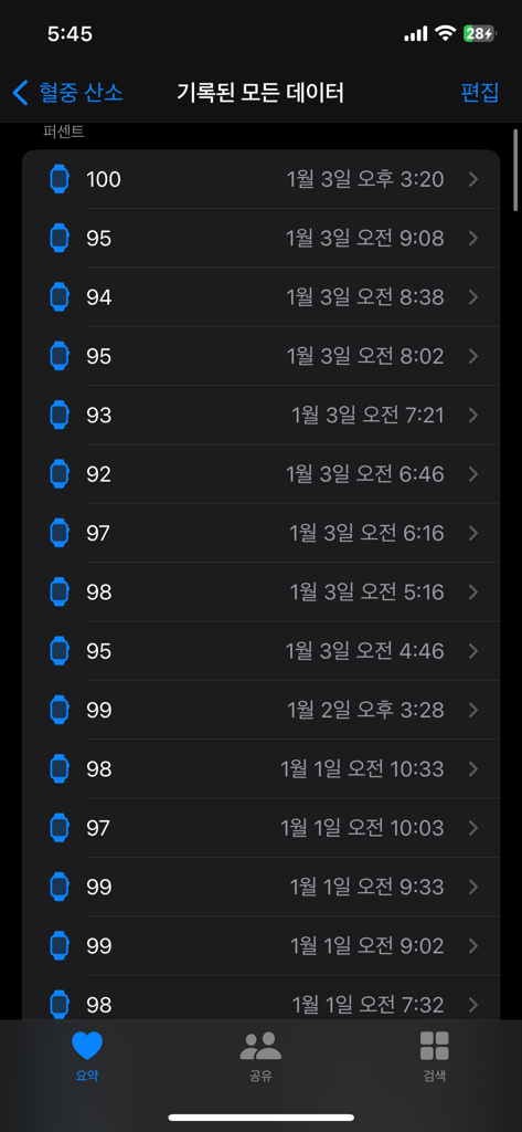 단순히 부정확한 측정이었다고 해석할 여지가 있습니다. 질환이 있는 상황이 아니라면 산소포화도를 신경쓰실만한 이유는 없겠고, 평소 건강관리를 위해 유산소운동 해보시면 되겠습니다.