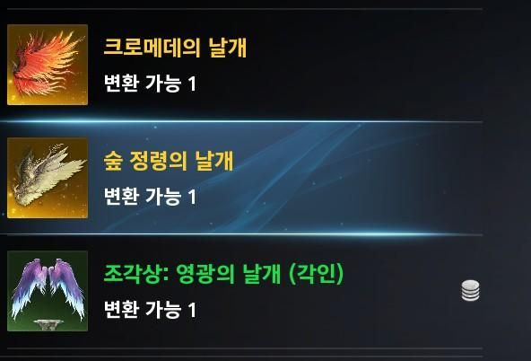 질문자님, ‘변환 가능 1’이라는 표시가 있다면 물질 변환을 1회만 할 수 있다는 뜻이 맞습니다. 즉, 그 아이템이나 날개에 대해 변환을 한 번 사용하면 더 이상은 변환할 수 없다는 의미에요. 그래서 앞으로는 해당 아이템으로 추가 변환은 불가능하고, 딱 그 1회만 변환해서 사용하실 수 있는 경우가 많습니다.