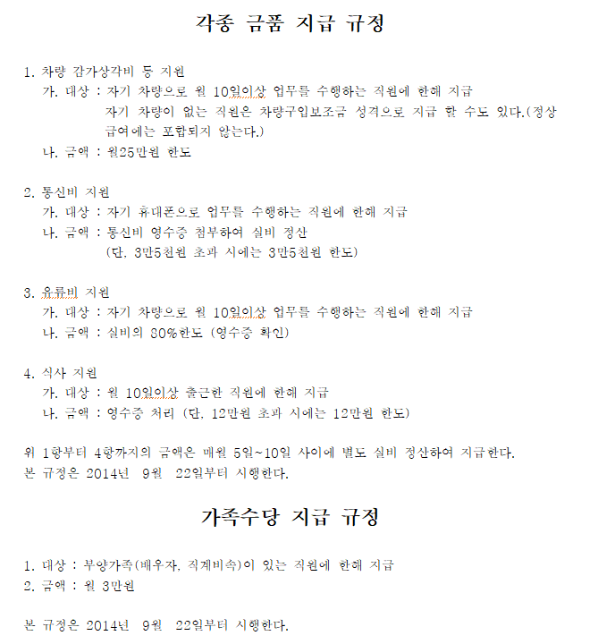 자가차량으로 업무를 하는 사람은 차량감가상각비로, 자가차량이 없는 사람은 차량구입보조금형식으로