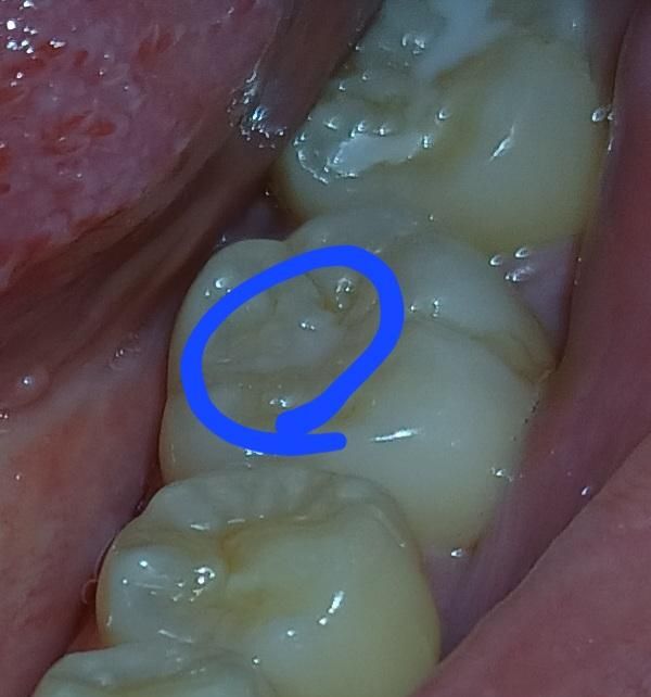 씹는면에 어떤 종류의 재료로 떼운 것으로 보입니다. 이런 경우 레진 아니면 질문하신 씰런트라는 재료가 대부분입니다. 지금 상태는 정상적인 것으로 보입니다.