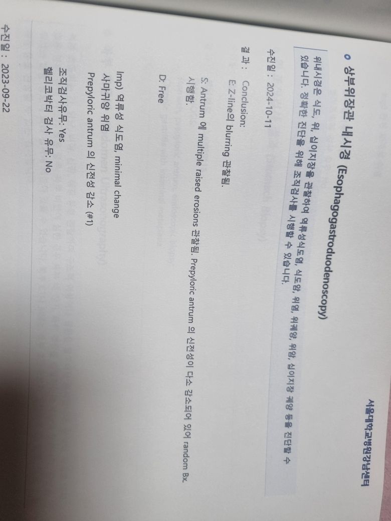 위 내시경을 받다가 조직검사를 받았는데 이렇게 결과가 나왔고 보만4형 위암 가능성 배제를 위해 ct촬영을 권유한다는데 이런경우 위암가능성이 높은건가요?