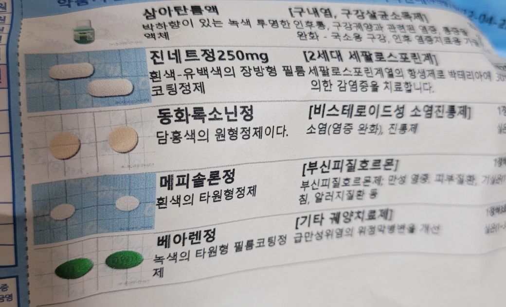 물론 이 약들도 부작용 가능성이 증가하는건 마찬가지기 때문에 목이 부은 증상이 괜찮아 지면 진네트정을 제외한 나머지는 중단하셔도 됩니다. 진네트정은 끝까지 복용해주세요.