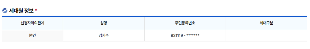 따로 기입을 안하고 접수했는데 세대구분란이 빈칸으로 되어있습니다.