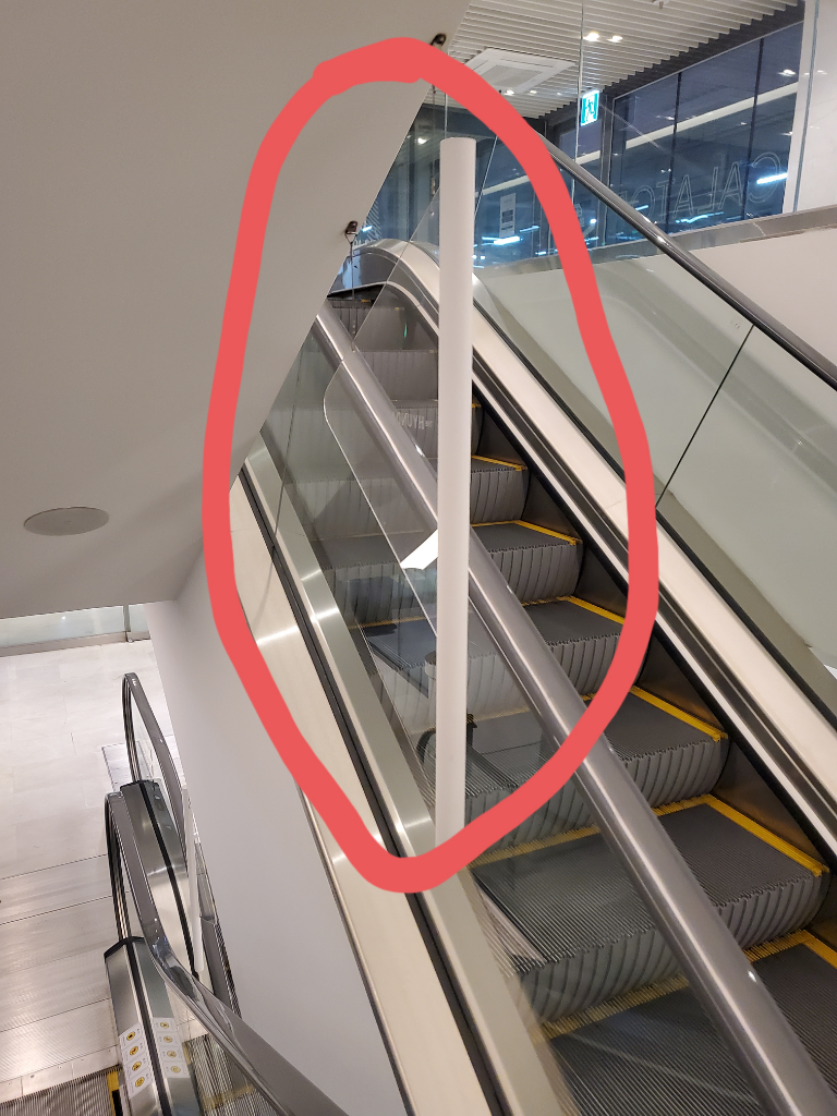 저게 있는 이유는 에스컬레이터가 올라가면서 머리가 끼이지 않도록 미리 알려주는 용도입니다^^