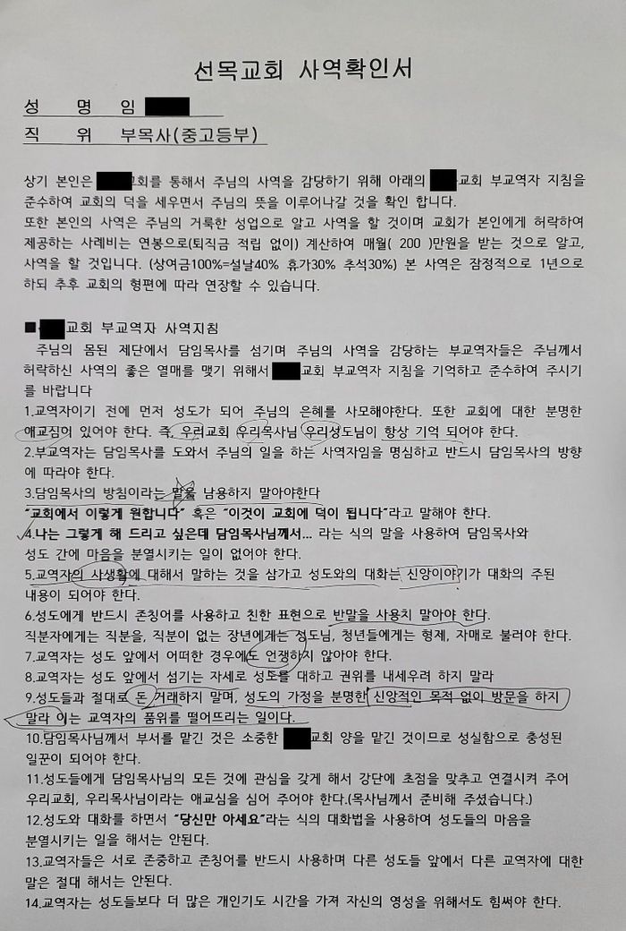 2. 교회의 목사라고 하더라도, 근로기준법상 근로자에 해당하는 경우에는 관련 규정의 적용을 받게 됩니다. 다만, 올려주신 사역확인서는 문제의 소지가 많아보이므로, 가까운 노무사 사무실을 내방하시어 이에 관련한 심층 상담을 받아보시길 바랍니다.