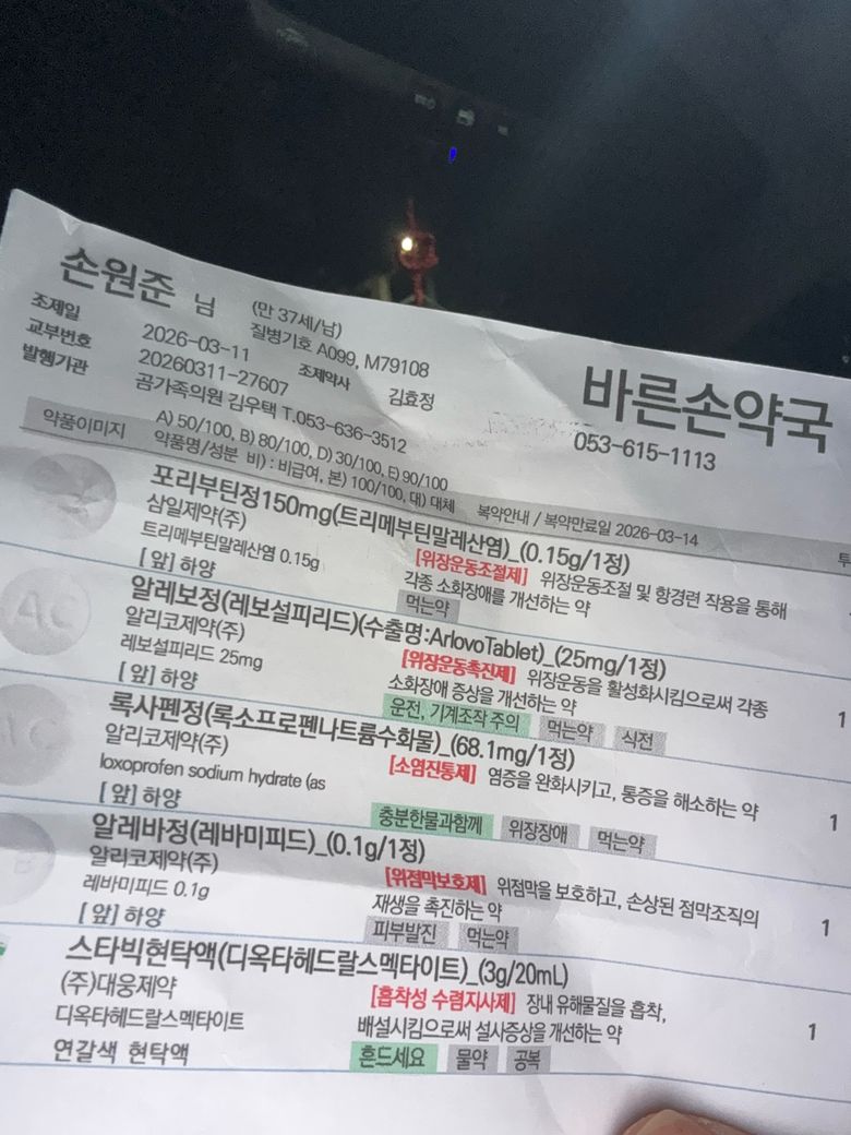 사진으로 첨부해주신 약에 포함된 록사펜정, 알레바정, 스타빅 등은 모두 부작용의 발생 빈도는 낮긴하지만 피부 발진이나 두드러기 같은 부작용이 발생할 가능성이 있는 약입니다.
