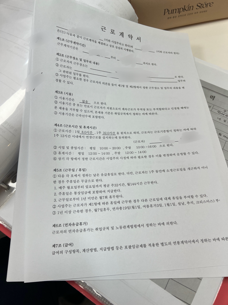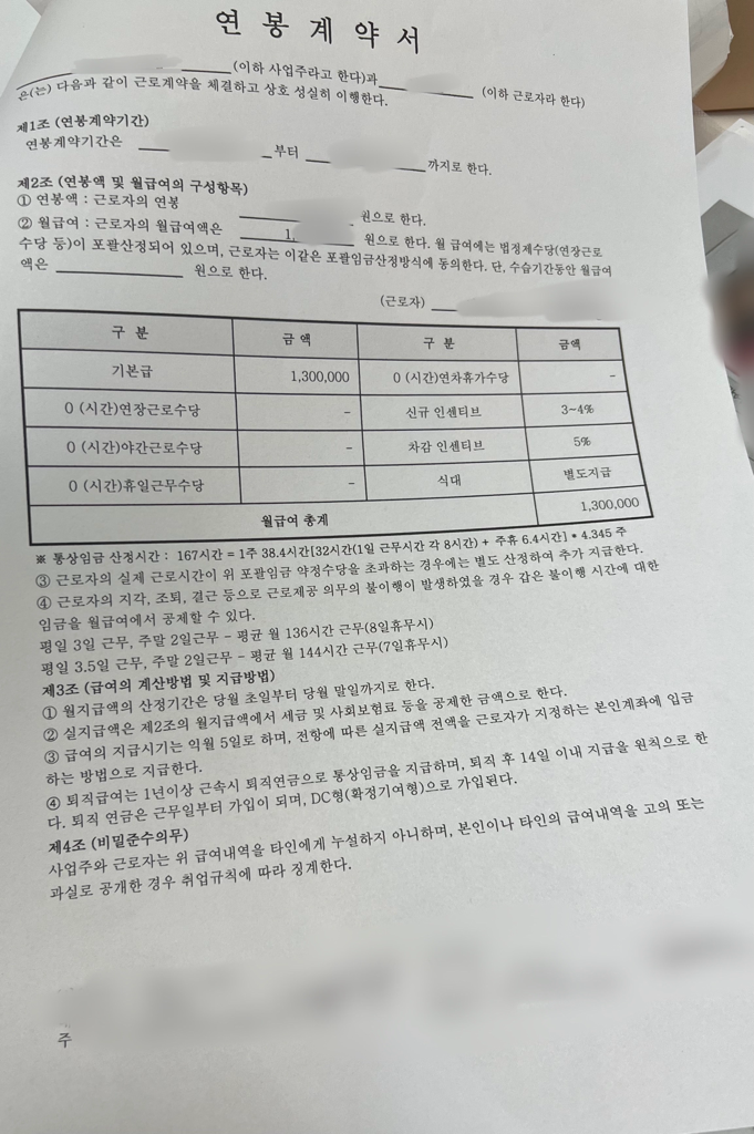 근로계약서 좀 봐주세요 수당받기 어려울까요?