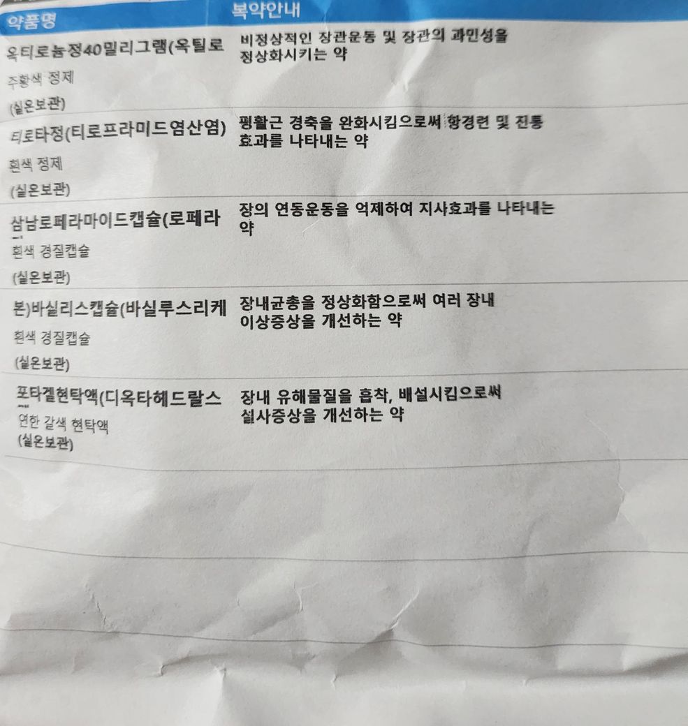 현재 처방받으신 약 종류에는 진통제가 아닌 진경제 종류입니다.