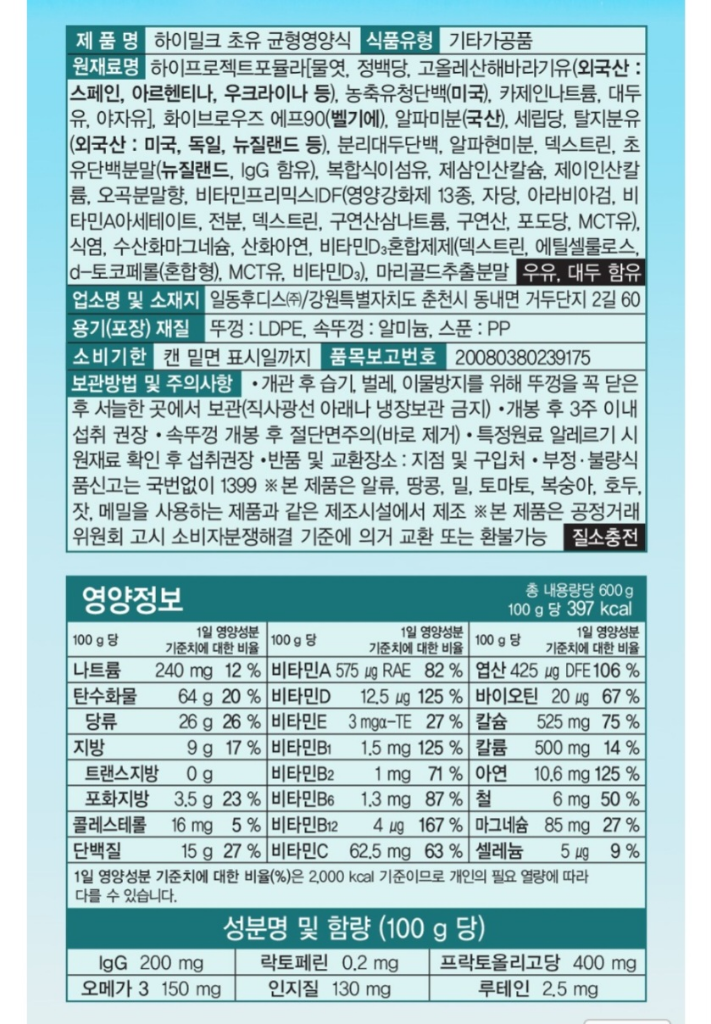 식단 영양이 허술한것같아 성인 분유인 하이밀크를 챙겨드시라고 해볼까 생각중이에요.
